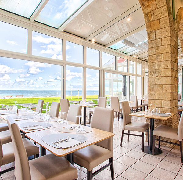 - Restauration des familles en salle des Lambris (historique) ou sous la véranda panoramique (vue mer).